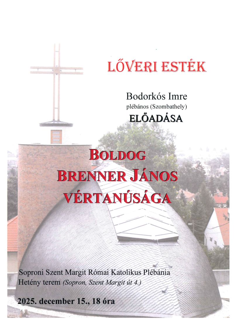 A soproni születésű Munkácsy Mihály-díjas grafikusművész, Hertay Mária Anna bibliai témájú (Sopron város tulajdonában lévő) képeiből állandó kiállítás van plébániánk Hetény termében. Szeretettel várjuk az érdeklődőket! ---- Az idei évben szeretnénk egy méltó sípos orgonát vásárolni templomunk részére, amely a liturgiában is megállja a helyét, ill. hangversenyezésre is alkalmas. Terveink szerint egy német származású, Kemper nevezetű orgonaépítő által készített hangszert szeretnénk megvásárolni. Az orgona megvásárlása és a mesterek általi átépítése, „templomunkhoz igazítása” kb. 40.000 Euro, + ÁFA. Amennyiben szívesen támogatná az orgona beszerzését, ezt megteheti banki utalással a 11737083-20098458 számlaszámra „orgona” megjelöléssel. ---- A korábban kápolnaként működő, ma Hetény János közösségi terem igénybe vehető, bérelhető családi- ill. kisebb létszámú közösségek (10-50 fő) vallási rendezvények (keresztelő, elsőáldozás, bérmálás, házasságkötés, házassági évforduló, halotti tor), születés- és névnap, előadások, összejövetelek alkalmával. Részletes tájékoztatást szívesen ad Staglné Hajtó Szilvia hivatali időben személyesen vagy telefonon. ---- Altemplomunkban urnafülkék megváltására van lehetőség. A részletekről szívesen ad felvilágosítást Szilvia a plébánia irodájában. ---- |