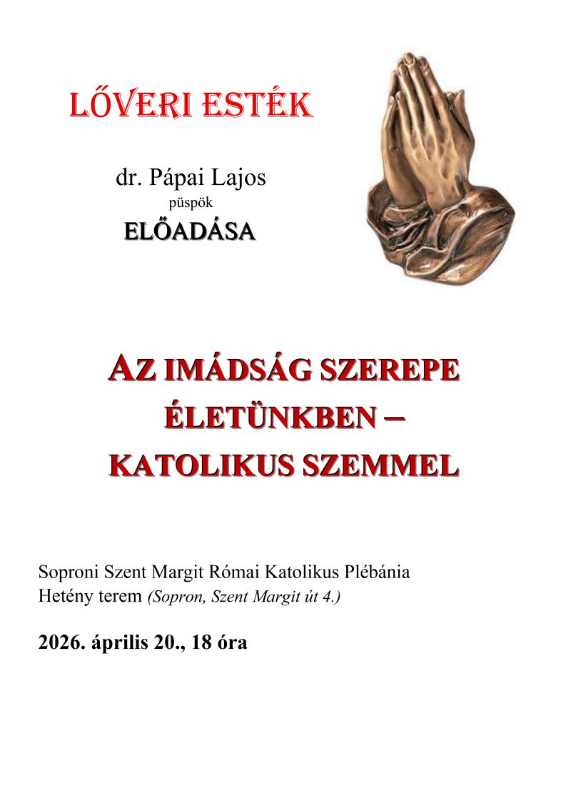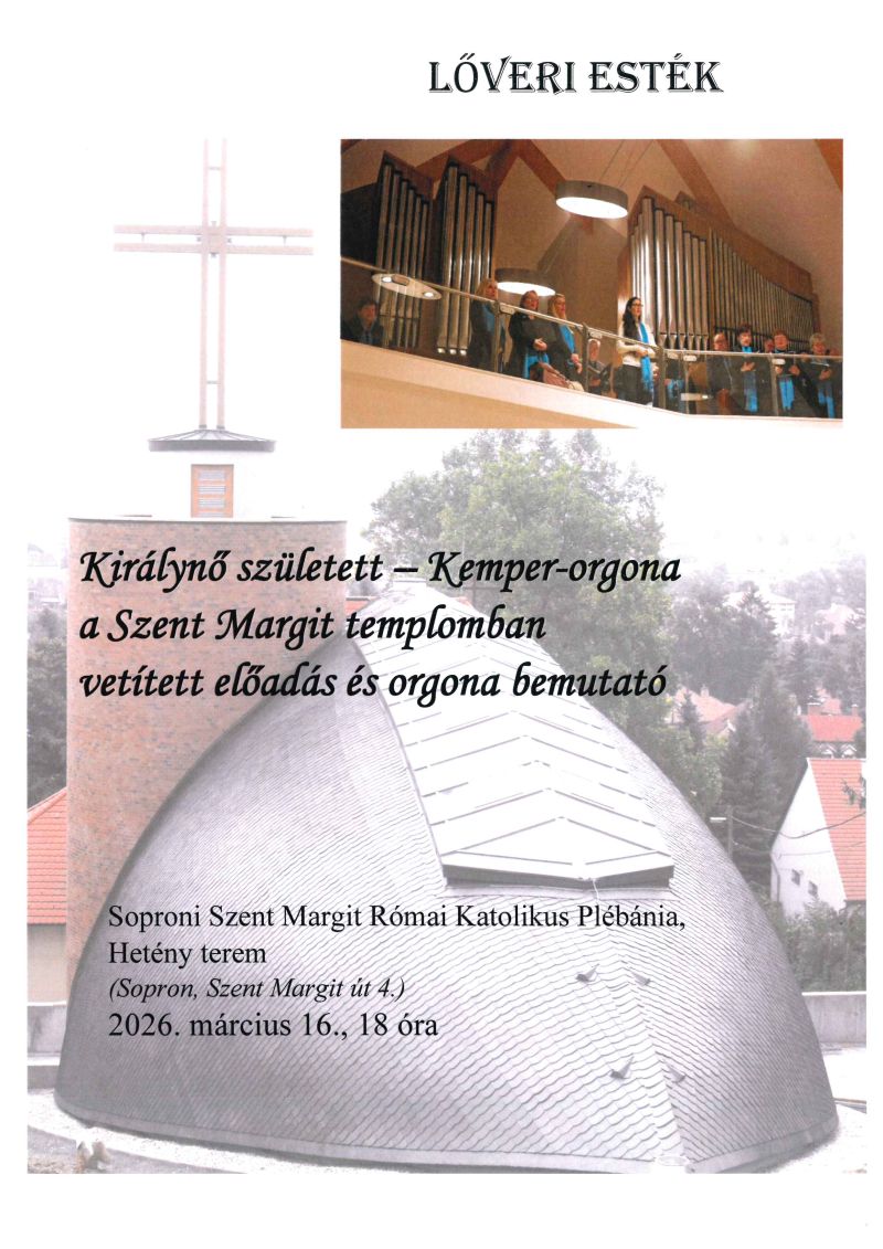 A soproni születésű Munkácsy Mihály-díjas grafikusművész, Hertay Mária Anna bibliai témájú (Sopron város tulajdonában lévő) képeiből állandó kiállítás van plébániánk Hetény termében. Szeretettel várjuk az érdeklődőket! ---- Az idei évben szeretnénk egy méltó sípos orgonát vásárolni templomunk részére, amely a liturgiában is megállja a helyét, ill. hangversenyezésre is alkalmas. Terveink szerint egy német származású, Kemper nevezetű orgonaépítő által készített hangszert szeretnénk megvásárolni. Az orgona megvásárlása és a mesterek általi átépítése, „templomunkhoz igazítása” kb. 40.000 Euro, + ÁFA. Amennyiben szívesen támogatná az orgona beszerzését, ezt megteheti banki utalással a 11737083-20098458 számlaszámra „orgona” megjelöléssel. ---- A korábban kápolnaként működő, ma Hetény János közösségi terem igénybe vehető, bérelhető családi- ill. kisebb létszámú közösségek (10-50 fő) vallási rendezvények (keresztelő, elsőáldozás, bérmálás, házasságkötés, házassági évforduló, halotti tor), születés- és névnap, előadások, összejövetelek alkalmával. Részletes tájékoztatást szívesen ad Staglné Hajtó Szilvia hivatali időben személyesen vagy telefonon. ---- Altemplomunkban urnafülkék megváltására van lehetőség. A részletekről szívesen ad felvilágosítást Szilvia a plébánia irodájában. ---- |