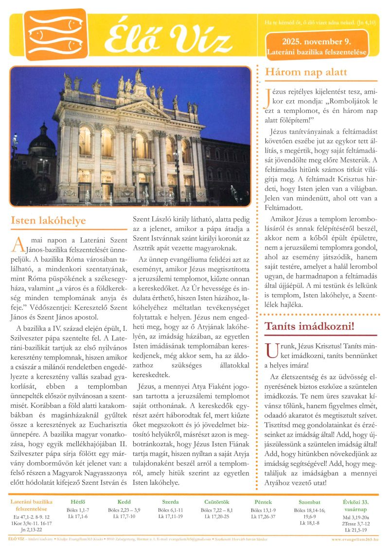 „Csörgedező patakok vidítják Isten városát, a Magasságbelinek szentséges lakóhelyét.” (Zsolt 45)