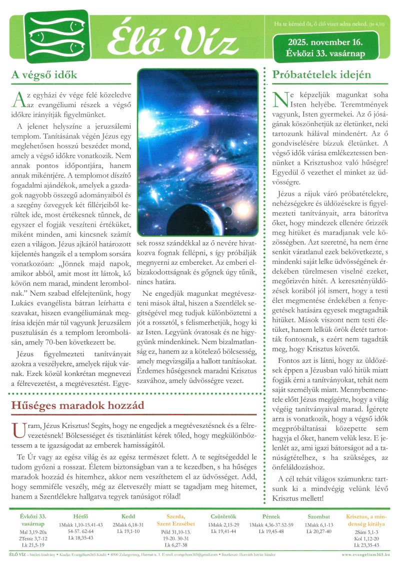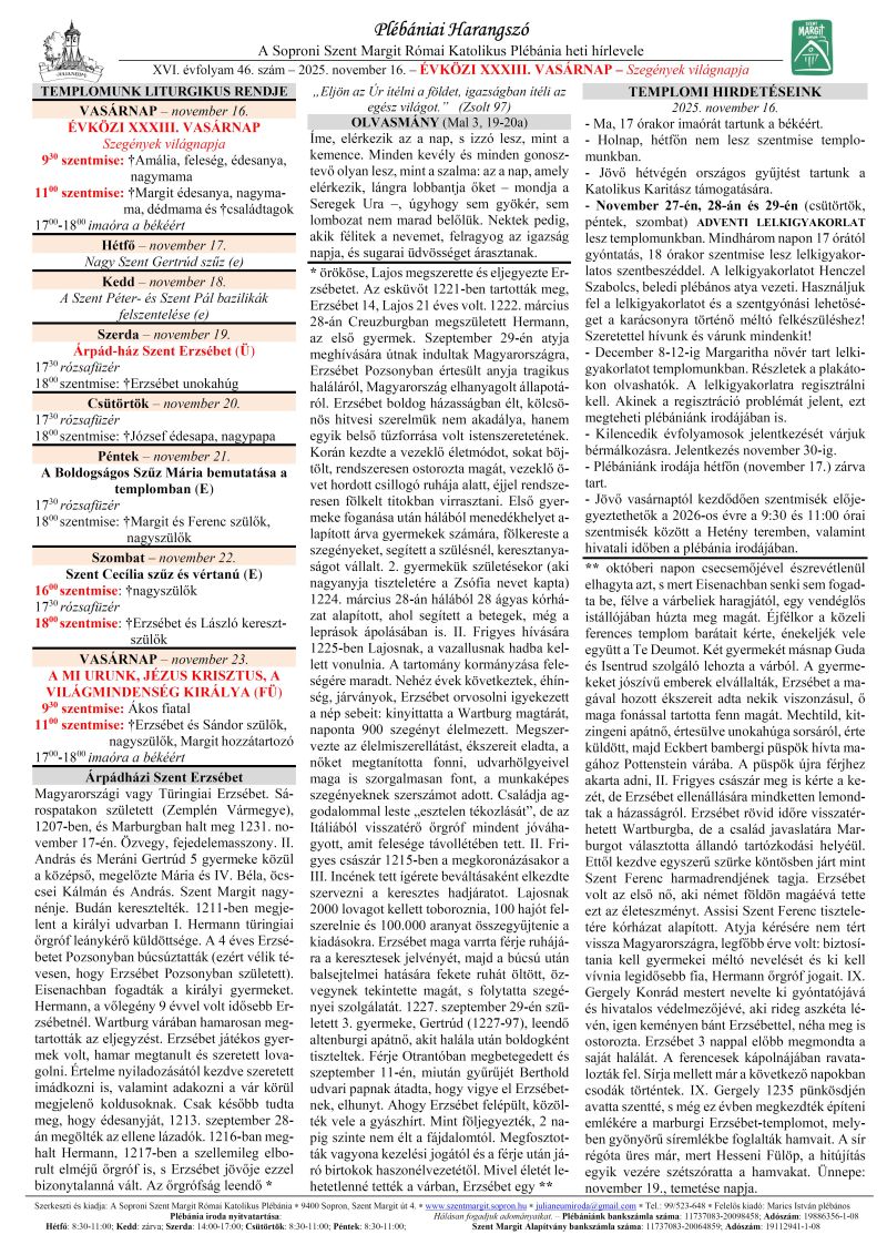 Jövő vasárnaptól (nov.23.) kezdődően szentmisék előjegyeztethetők a 2026-os évre a 9:30 és 11:00 órai szentmisék között a Hetény teremben, valamint hivatali időben a plébánia irodájában.
