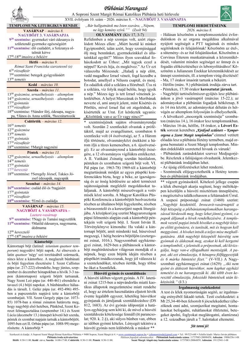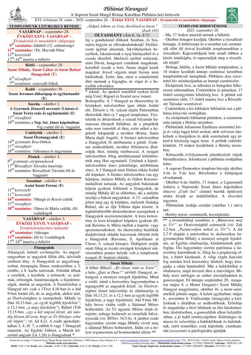 Soproni plébániák miserendje