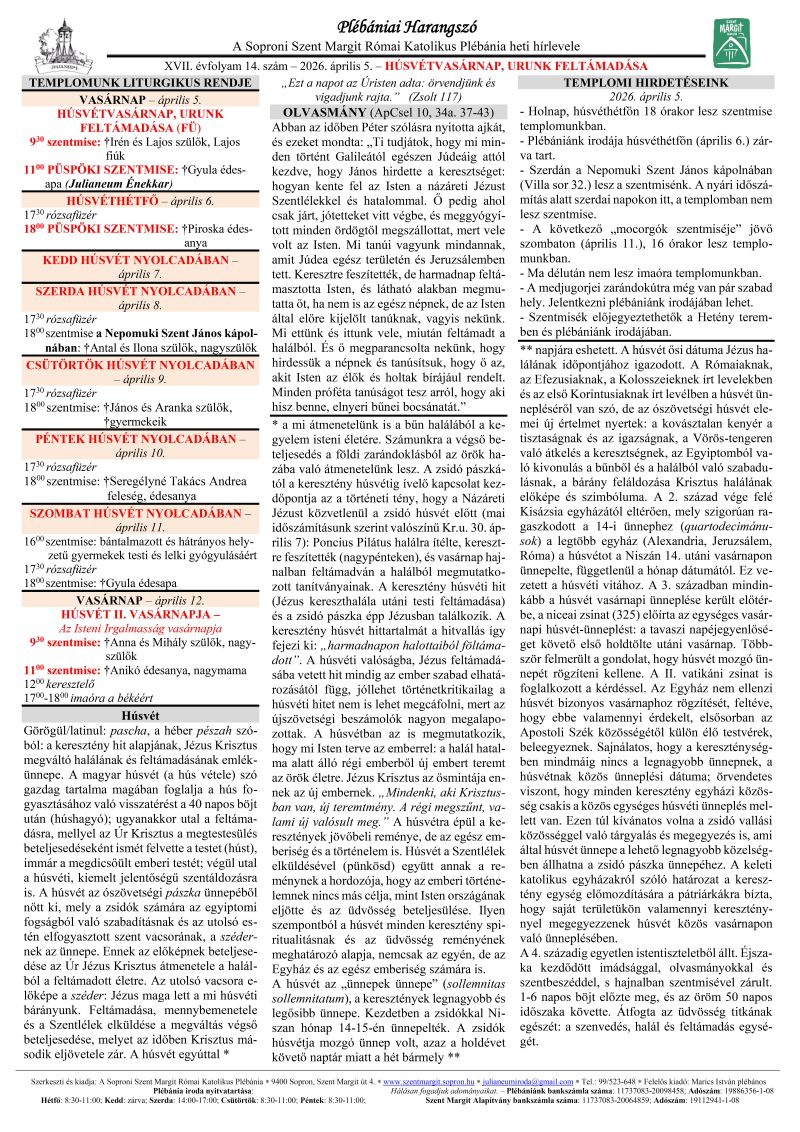 Holnap, húsvéthétfőn 18 órakor lesz szentmise templomunkban.