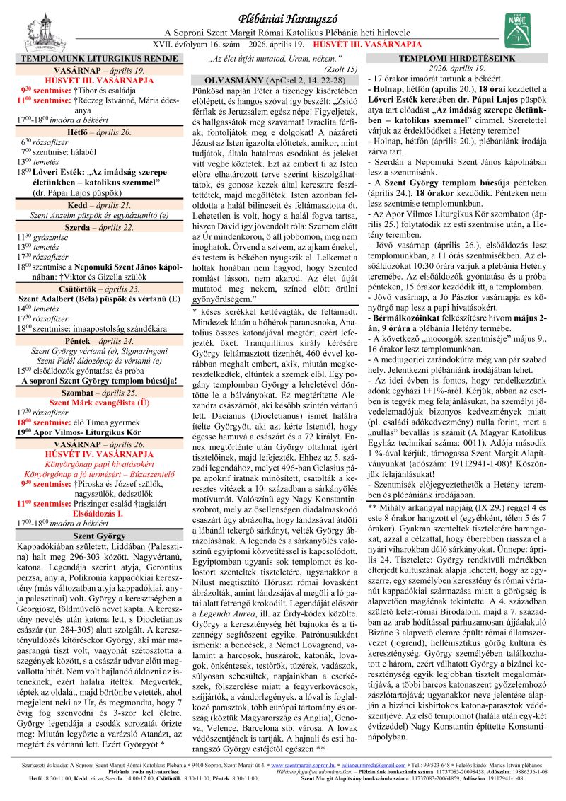 Jövő vasárnap (április 26.), elsőáldozás lesz templomunkban, a 11 órás szentmisékben.