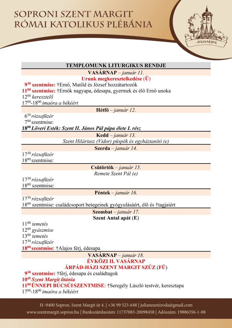 Soproni plébániák miserendje