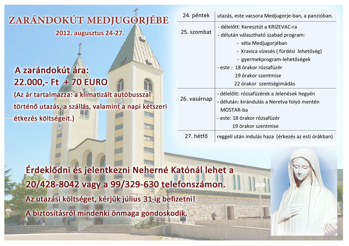 Október a rózsafüzér hónapja. A hétköznapi és a szombat esti szentmisék előtt fél órával kezdődik templomunkban a rózsafüzér. Kapcsolódjunk bele minél többen a közös imádságba, és tapasztaljuk meg a rózsafüzér erejét!