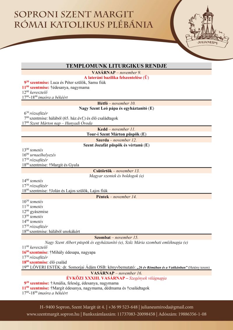 Soproni plébániák miserendje
